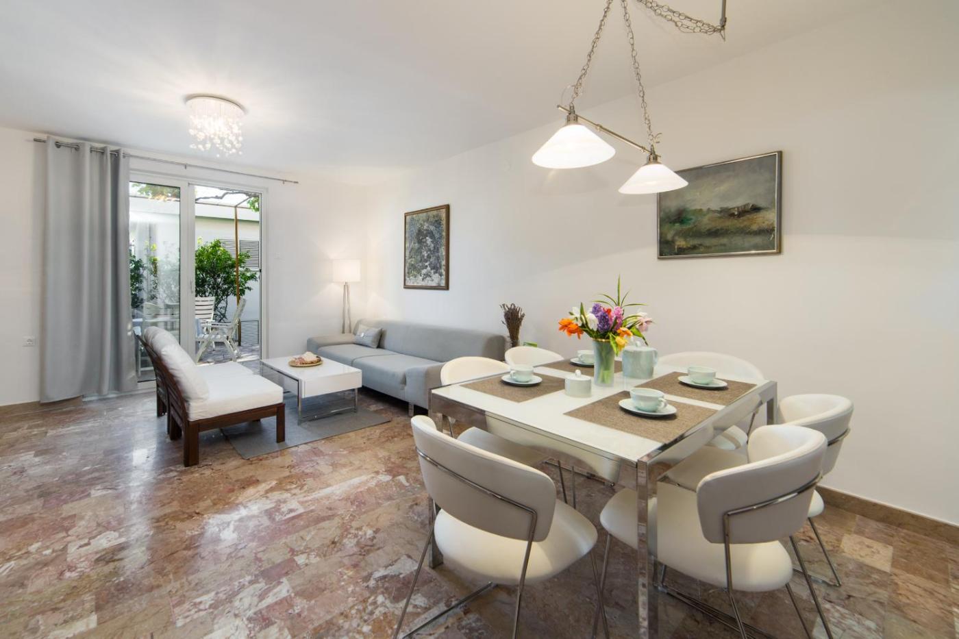 The spacious apartment comes with 3 bedrooms, 2 bathrooms, bed linen, towels, a flat-screen TV with satellite channels, a dining area, a fully equipped kitchen, and a terrace with sea views. Guests can enjoy a meal on an outdoor dining area while overlooking the garden views. For added privacy, the accommodation features a private entrance.