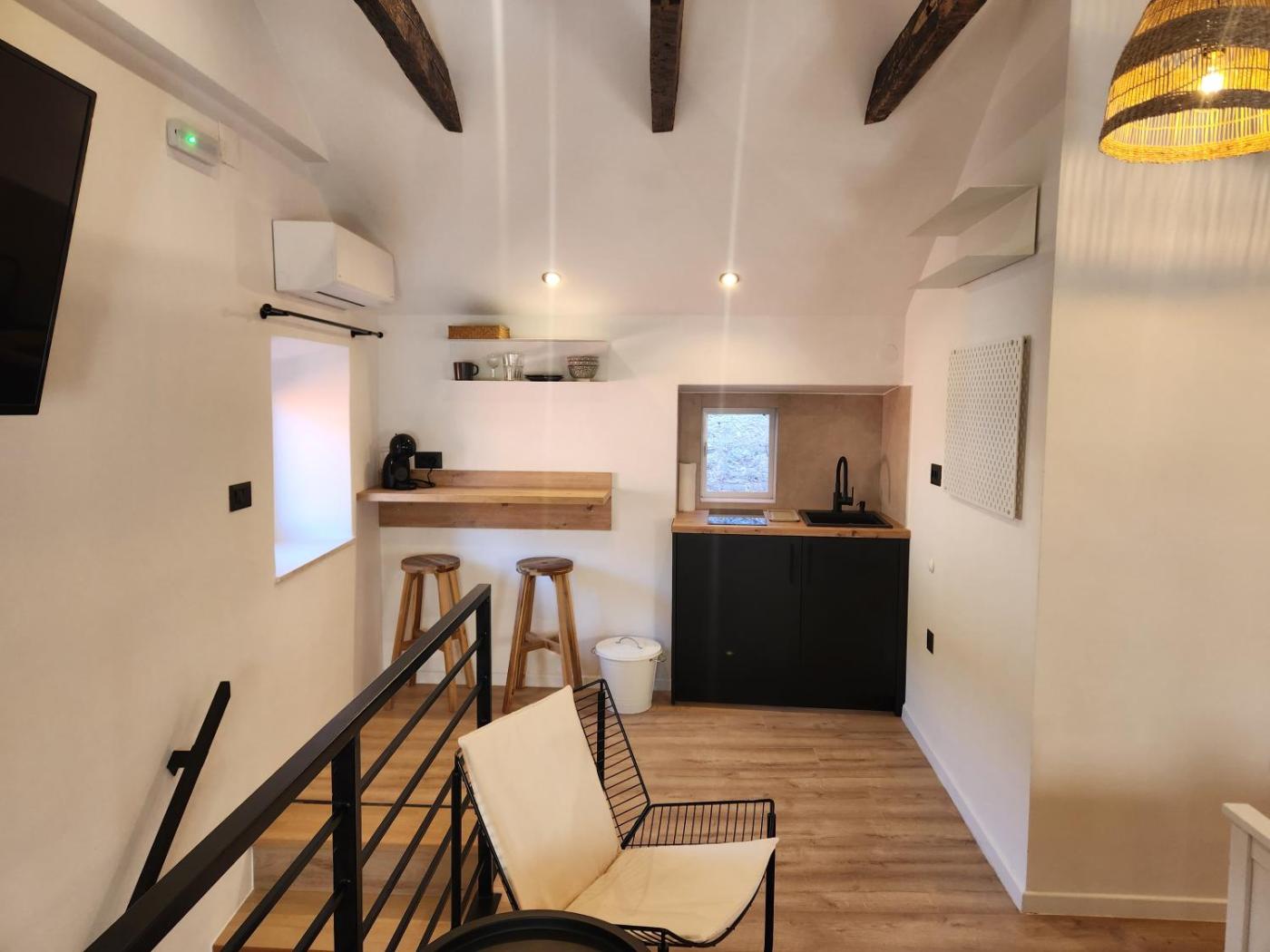 Studio. This air-conditioned studio features a flat-screen TV. There is fully equipped kitchenette with stove, refrigerator and an electric kettle. Private bathroom comes with a shower and a hairdryer. ;