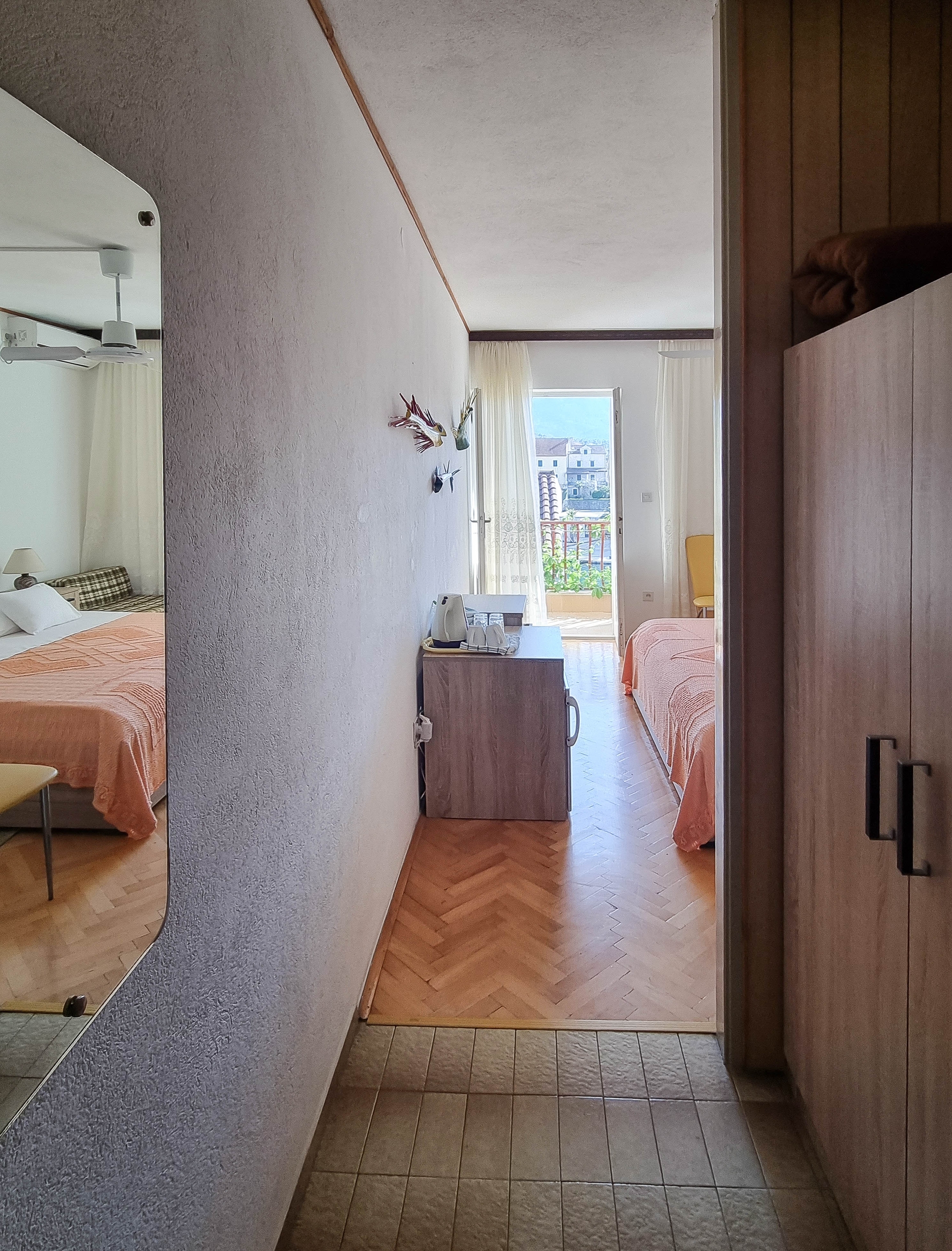 Room can accommodate 2 guests. Beds are situated in 1 sleeping rooms, within 19m2. Guests can use a private balcony to enjoy the warm summer evenings. The room offers the sea view. Reserved accommodation unit is a room with its own bathroom and there is no usage of kitchen. INCLUDED IN THE PRICE: tourist tax, final cleaning, air-conditioning, parking, internet, baby cot, hairdryer. OBLIGATORY ADDITIONAL COSTS: short stay fee (surcharge depending on a number of booked nights: 30% - 1, 20% - 2, 10% - 3). The availability of additional services for your chosen dates of stay, as well as their prices (if none are listed) must be checked ahead of time. Any additional services not shown in the price calculation are payable directly to the property owner and only if used by the visitor.
