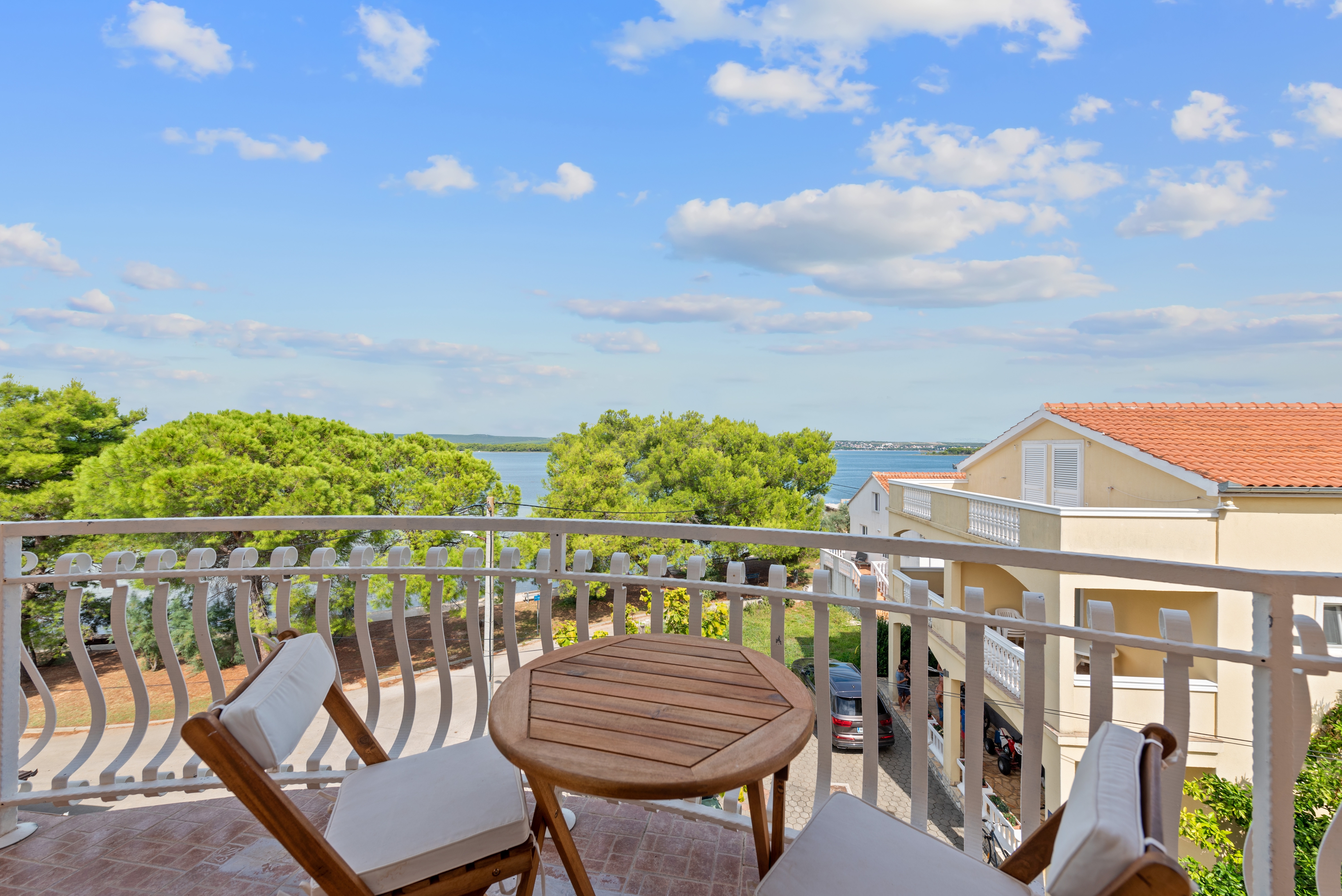 Apartment can accommodate 5 guests. Beds are situated in 2 sleeping rooms, but also in the living room, within 56m2. Guests can use a private balcony to enjoy the warm summer evenings. The apartment offers the sea view. Food can be prepared using barbecue which is shared with other guests too. Shared pool is on disposal during stay. INCLUDED IN THE PRICE: tourist tax, final cleaning, air-conditioning, central heating, pool, parking, internet, baby cot, additional bed, iron, ironing board, hairdryer, sunshade, sunchairs. OBLIGATORY ADDITIONAL COSTS: short stay fee (surcharge depending on a number of booked nights: 30% - 1, 20% - 2, 10% - 3). OPTIONAL ADDITIONAL COSTS: breakfast (€10.00, a 50% discount for children aged 4 to 12 years, Children up to age 4 free of charge), half-board (€25.00, a 50% discount for children aged 4 to 12 years, Children up to age 4 free of charge), full board (€40.00, a 50% discount for children aged 4 to 12 years, Children up to age 4 free of charge). The availability of additional services for your chosen dates of stay, as well as their prices (if none are listed) must be checked ahead of time. Any additional services not shown in the price calculation are payable directly to the property owner and only if used by the visitor.